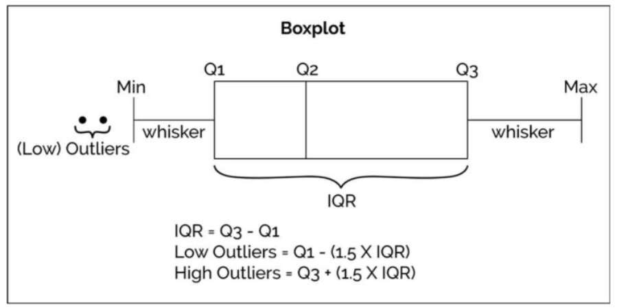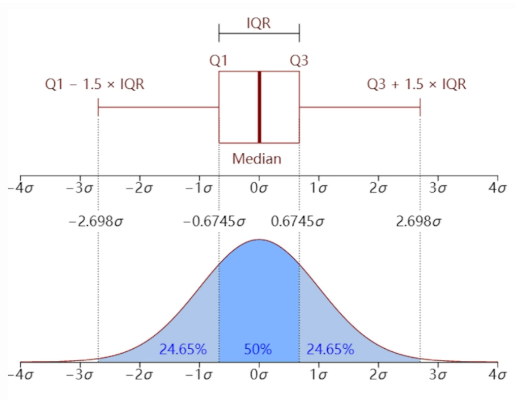 - 须:从 Q1/Q3 向外延伸,默认至 1.5 × IQR 范围内的极值。