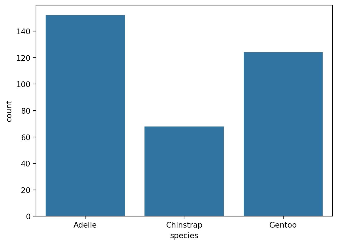 # 此处自动统计了 "每个种类的企鹅分别出现的次数"。