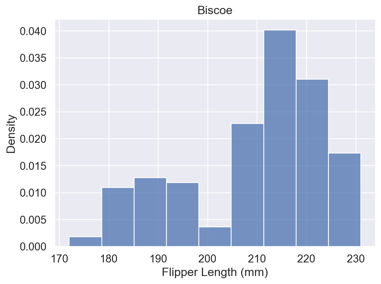 ax.set(title='Biscoe', xlabel='Flipper Length (mm)')