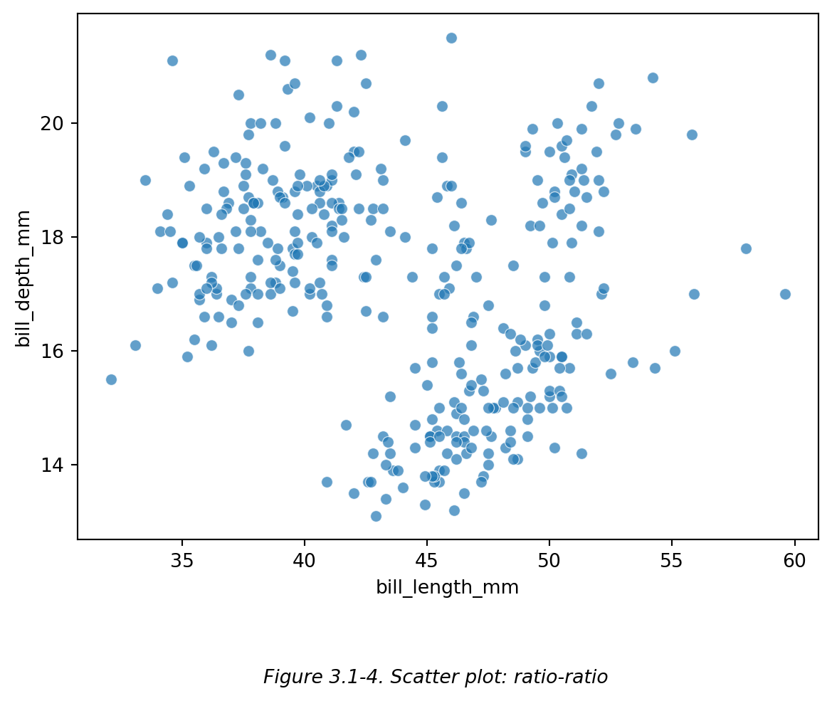# 散点图示例:企鹅喙长-喙深 ratio-ratio