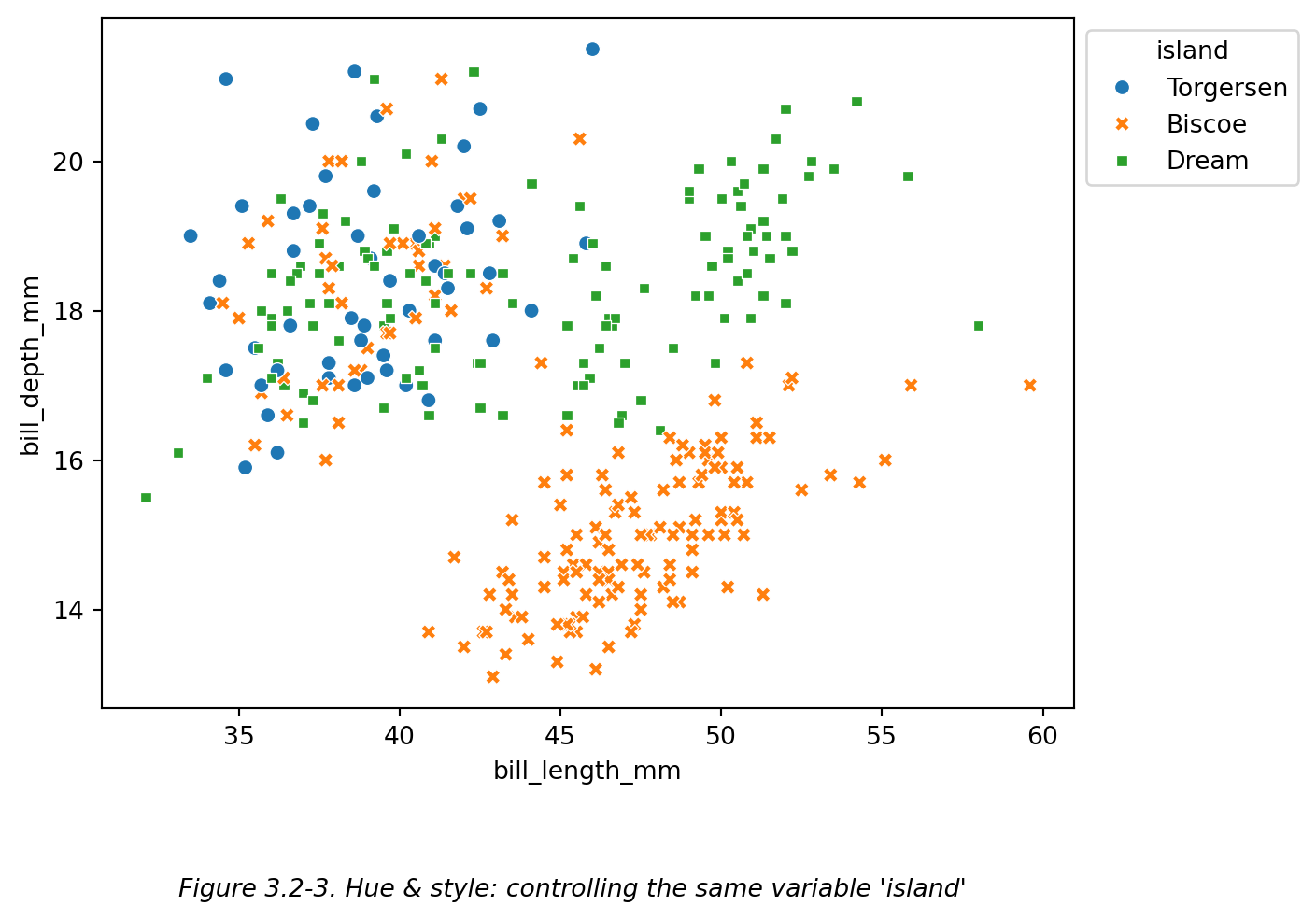 hue='species', # 使用不同颜色来区分不同种类的企鹅