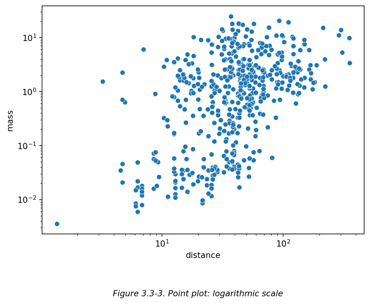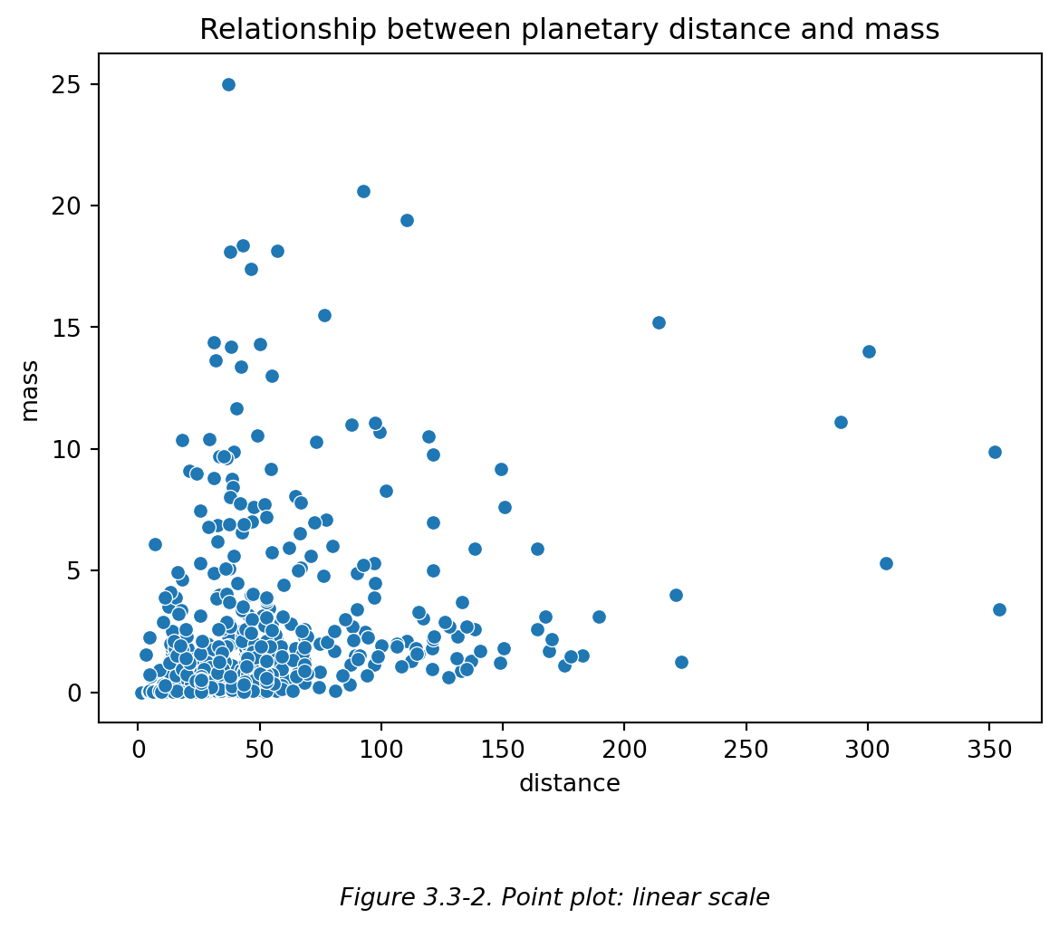 而画 点图 (point plot) 时,每一个点都会自动对应一个特定的横轴刻度,如果点图的横轴使用 ratio data,可能会产生如下效果 (Figure 3.1-5):