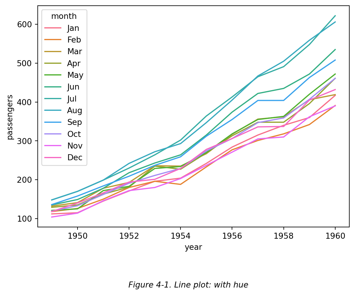 plt.figtext(0.5,-0.1,"Figure 4-1. Line plot: with hue",ha="center",fontsize=10,style='italic')