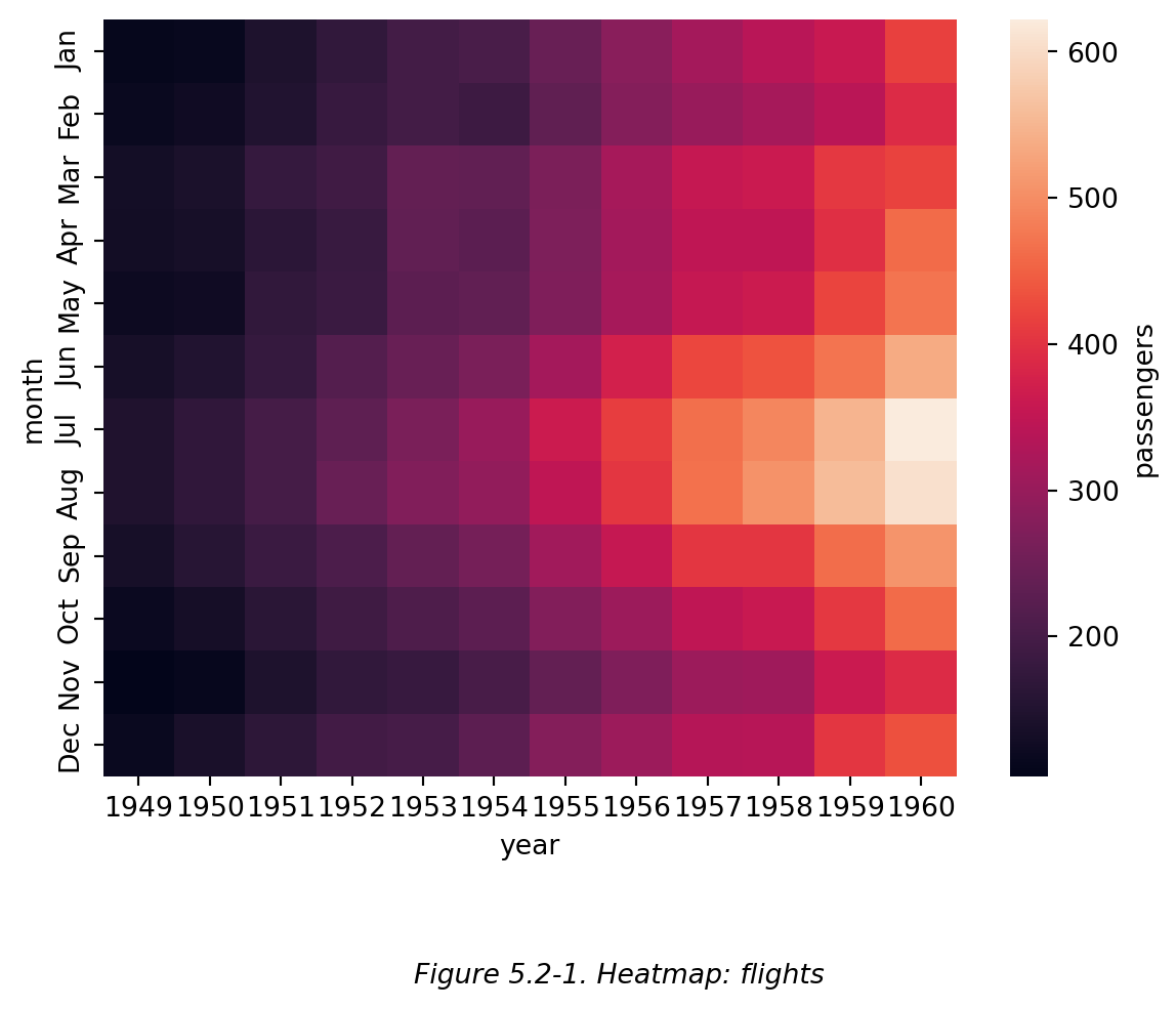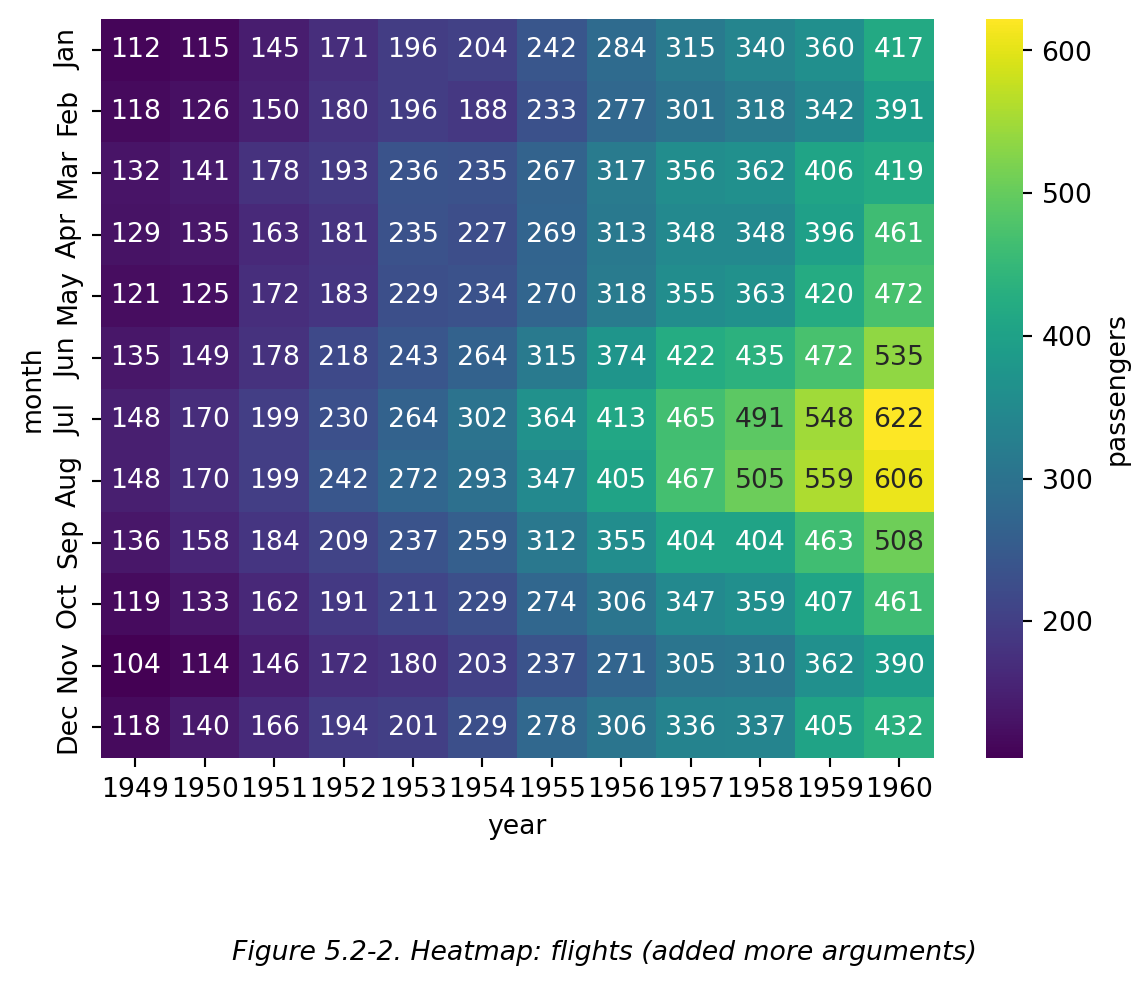还可以通过设置 `sns.heatmap()` 函数中的 其他参数(如:`cmap`,`annot`)来进一步修改热力图,如下图(Figure 5.2-2):