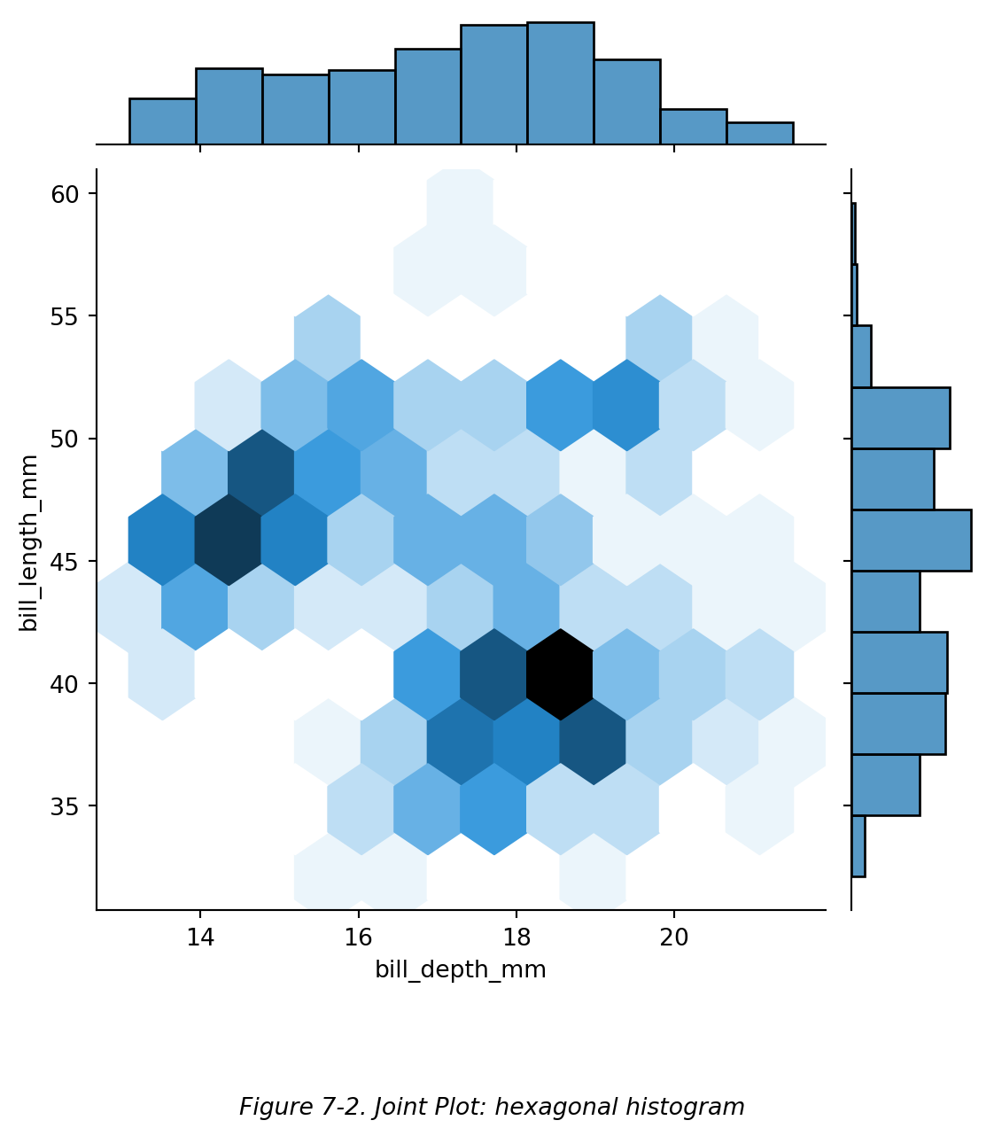 还可以通过控制参数 `kind='hex'` 来让中间的各自呈六边形,如下图 (Figure 7-2):
